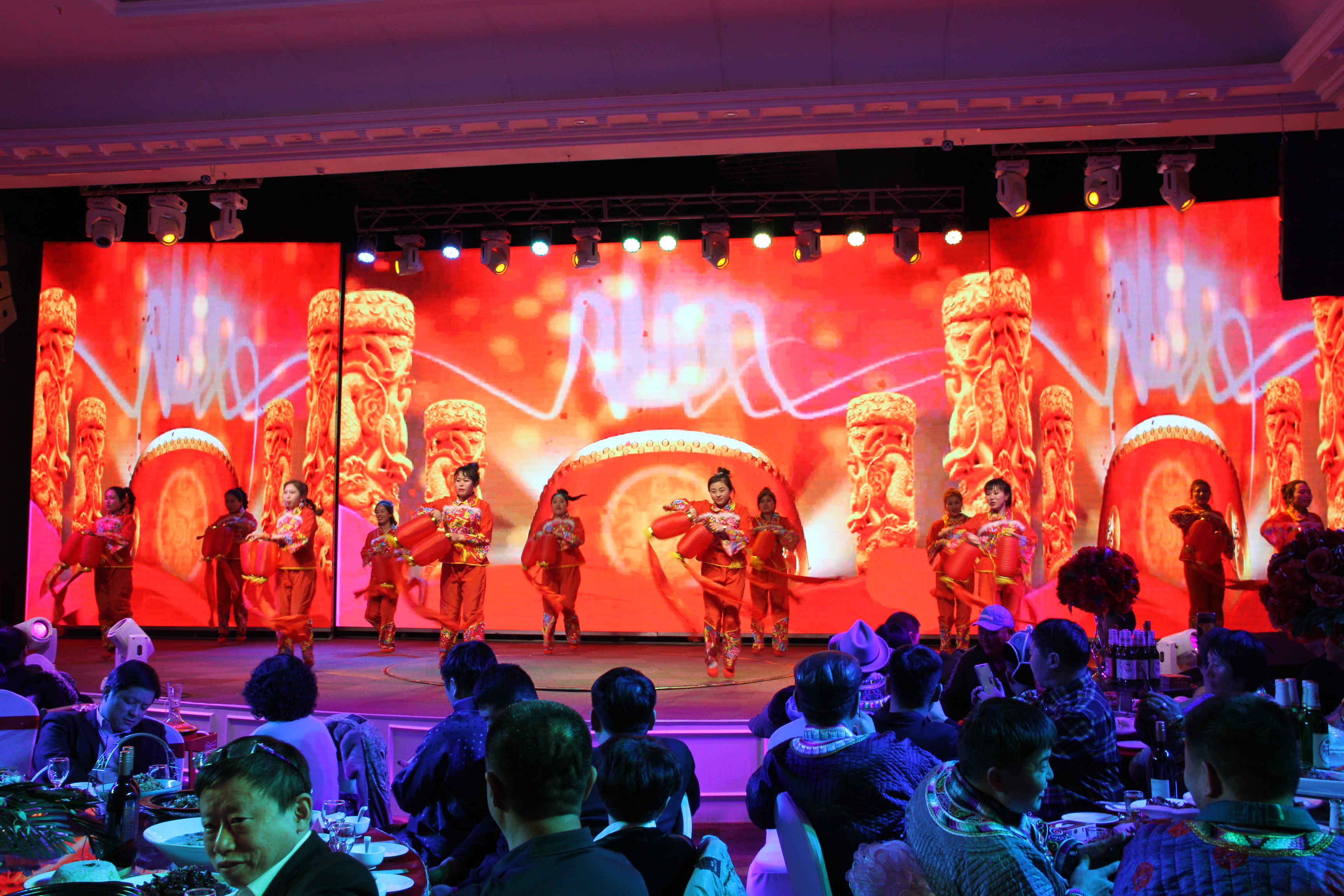 總結表彰大會之后,大家移身維也納金廳,一年一度的大莊園“春晚”在那里上演——這是大莊園人展示風采的最佳舞臺。在集團各部門、子公司及國外友人的祝福VCR播放之后,一場喜慶的開場舞《歡樂中國年》拉開了晚會的序幕。
