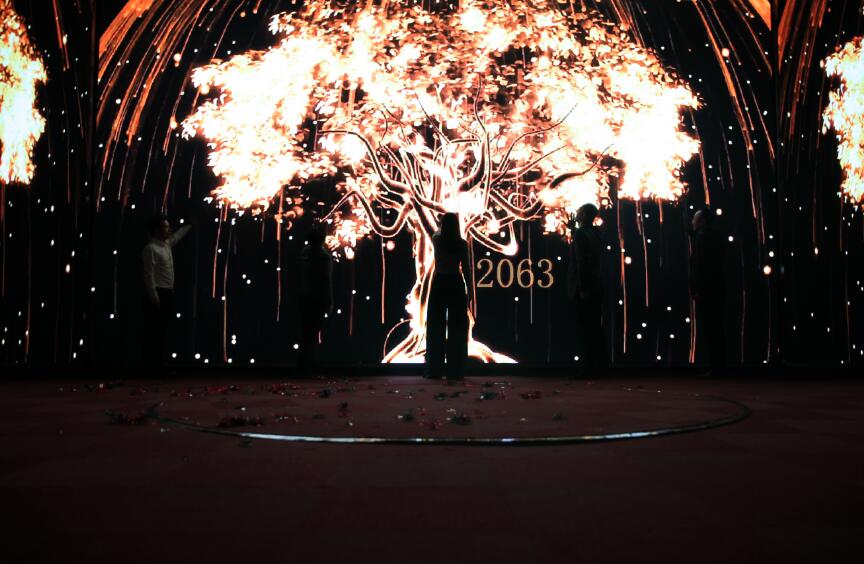 晚會的最后,以陳姣姣為首的集團五名領導走上臺,代表董事長開啟了“希望之樹”。那棵象征著大莊園的“希望之樹”從1982年開始成長,一直長到了2019、2029、2059、2099……