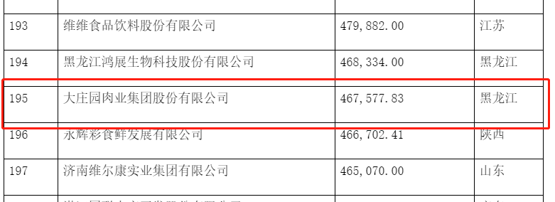 近日,“2021(第五屆)中國農業企業500強榜單”正工出爐,大莊園肉業集團股份有限公司入圍。