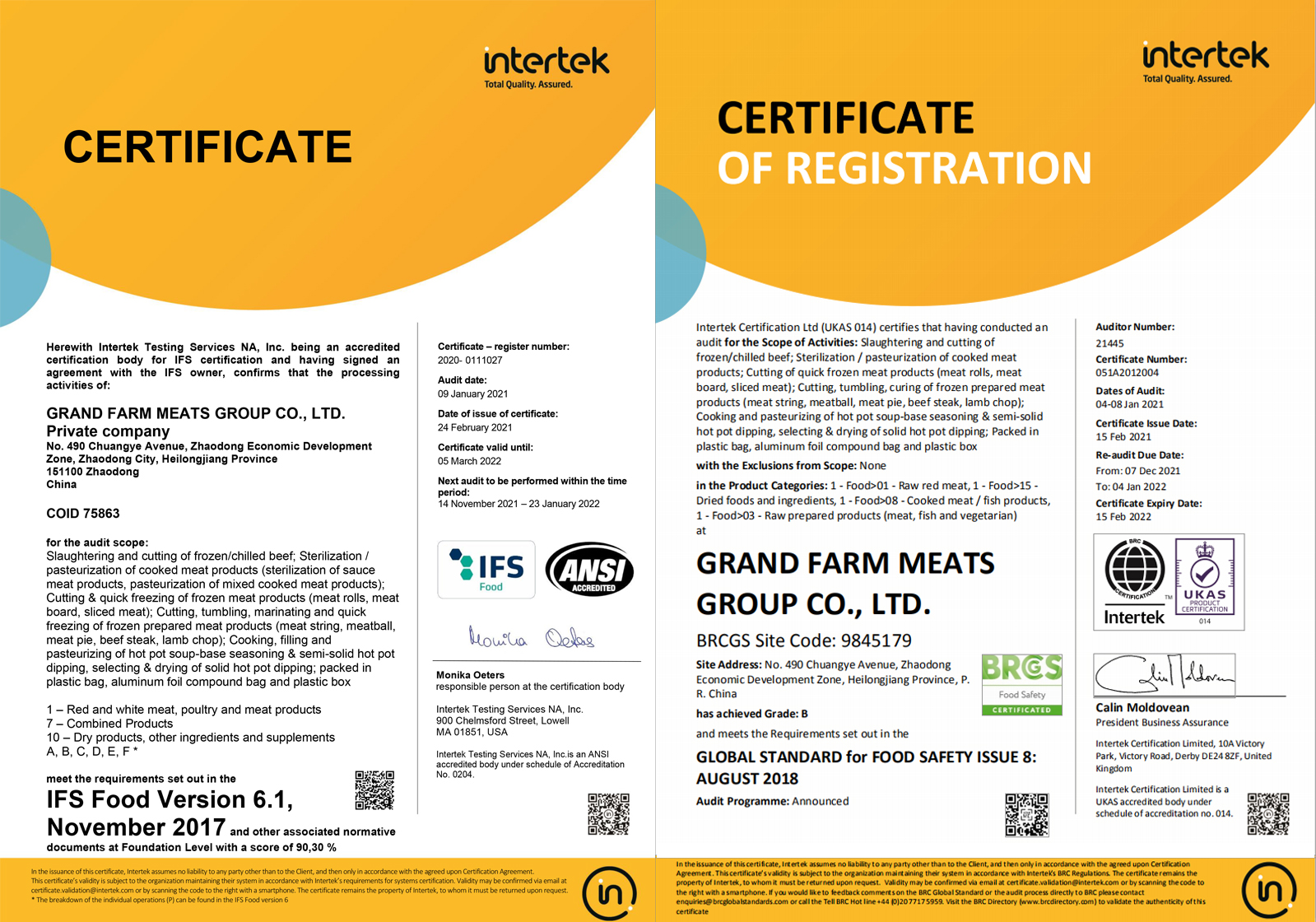 2021年1月,通過歐洲國際雙體系質(zhì)量認證(BRCGS、IFS)。